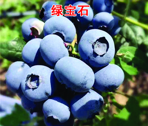 綠寶石 采收期 5-6 月,美國(guó)優(yōu) 良大果形品 種。果形扁 圓,藍(lán)黑色, 果粉厚。果 粒 大, 一 般粒重 3-5 克。味甜, 質(zhì)地較硬, 耐貯運(yùn)。自 花結(jié)果,但 配栽 2 個(gè)品 種 產(chǎn) 量 更 高。