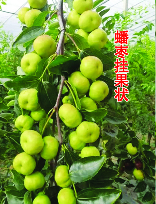 蟠 棗 9-10 月 成 熟,均 果 重 35 克,大果 83 克,果 實扁圓形,含糖量 35.4%。皮薄肉細, 酥脆多汁,品質(zhì)極 上。自花授粉,屬 于高檔早熟品種, 極豐產(chǎn),經(jīng)濟效益 大。棗樹由于是主 根系,須根少,大 面積生產(chǎn)建議購買 營養(yǎng)缽苗。