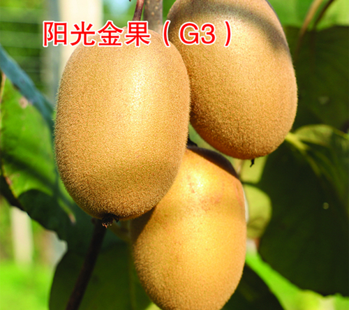 陽(yáng)光金果(G3) 9 月中下旬成熟,可延 續(xù)采收到 10 月底,9 月中下旬成熟,可延 續(xù)采收到 10 月底,黃肉獼猴桃最新品種。 果形長(zhǎng)圓柱狀,果皮黃褐色,著短絨毛。 均果重 112 克,100-120 克果很普遍。果 肉金黃色,含糖 18-22%,風(fēng)味濃郁,口感 特好。該品種樹(shù)勢(shì)強(qiáng)健,抗?jié)儾、抗高溫?豐產(chǎn)穩(wěn)產(chǎn)。